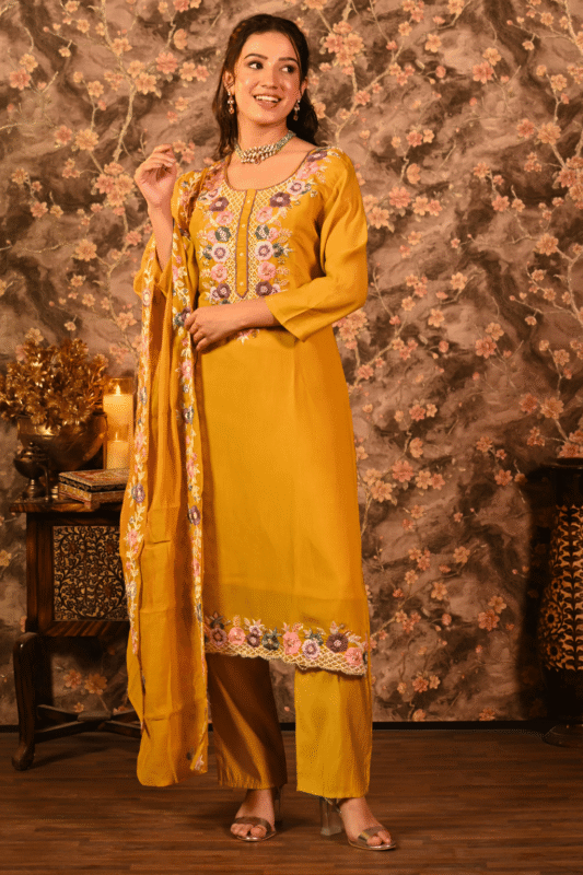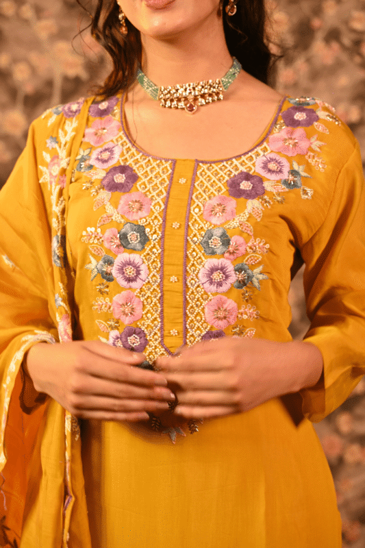 Shripali Haldi Glam Designer Embroidered Suit