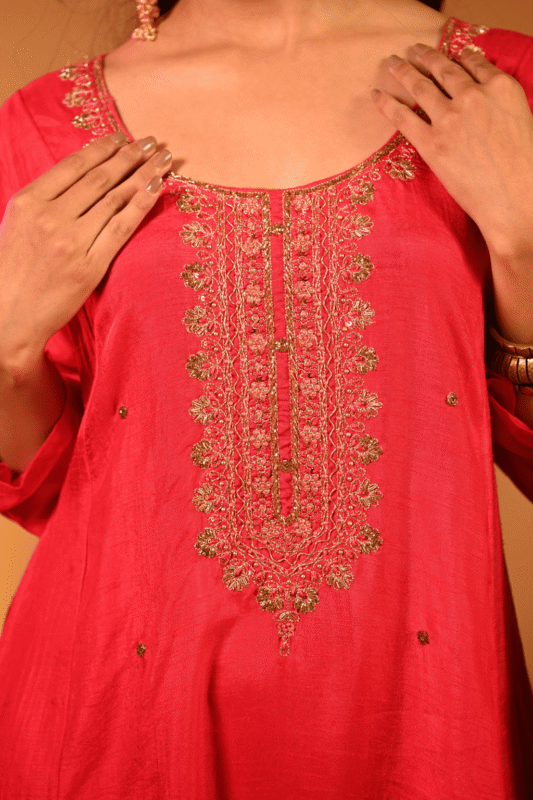 We understand that every woman needs ethnic wear that fits both special occasions and everyday life. Whether you are celebrating Diwali, Karwa Chauth, weddings, or family gatherings, our hand-embroidered suits and intricately designed kurta sets help you shine with elegance and tradition. For more casual moments, like brunches, outings, or office wear, our stylish co-ord sets and lightweight kurtas provide the perfect balance of comfort and sophistication.