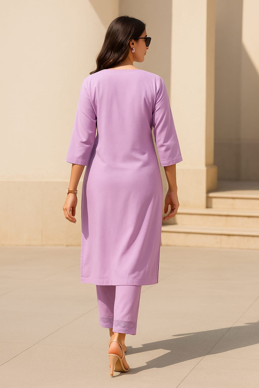 Shripali Lavender Heavy Chikankari Kurta Plazzo with Crochet Lace Work