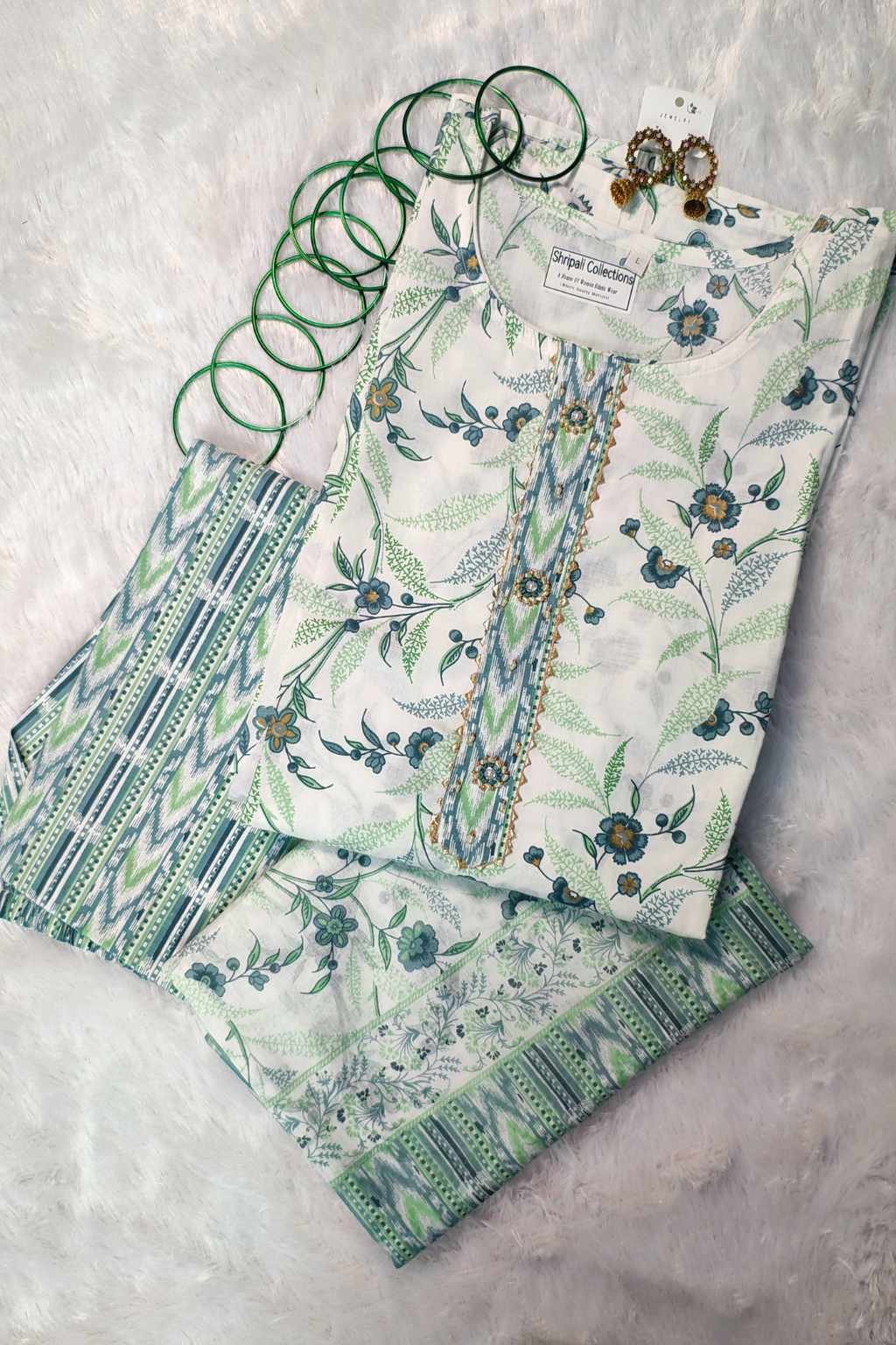 Shripali A-Line Pure Cotton with Floral Print Kurta Pant Set with Dupatta