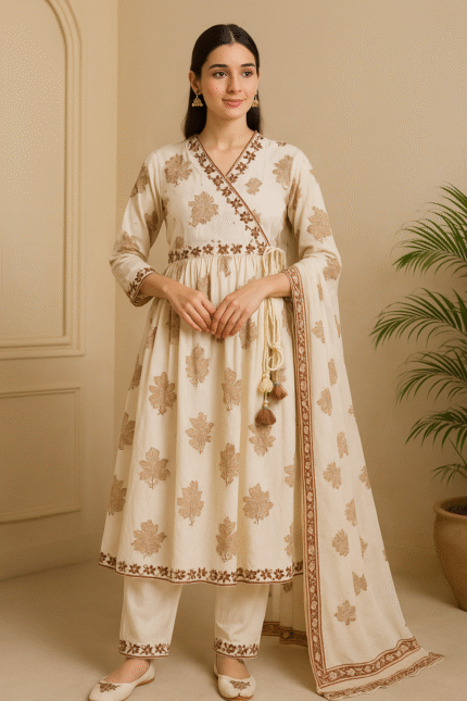 Shripali Pure Malmal Cotton Angrakha Kurta Pant Set with Dupatta